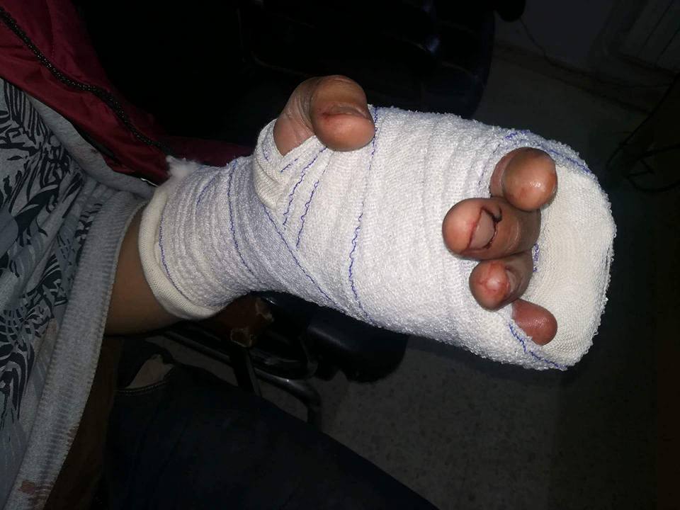 ثم طلب مني رئيس الفرقة نزع سروالي فرفضت كذلك وبكيت له مستجديا عدم فعل ذلك إلا أنهم واصلوا ضربهم لي بكل ما أوتوا من قوة حتى دفعوني نحو الشباك وكنت أحاول إخفاء وجهي بيديّ المكبلتين، وإذا بإحدى اللّكمات القوية تدفعني نحو البلور فتهشم ورأيت إصبع يدي اليسرى (البنصر) يتدلّى من كفّي والدم يندفع منه ومن يديّ فصحت من هول ما رأيت حتى أغمي عليّ وفقدت وعيي، لكنهم واصلو ضربي وركلي بالأرجل (كما يقول) ثم سكبوا الماء على جسمي وأنفي وفمي حتى "شرقت"، وعندما استفقت من الغيبوبة وجدت نفسي عاريا تماما من كل ثيابي وسروالي وتباني ملقيين أمامي،