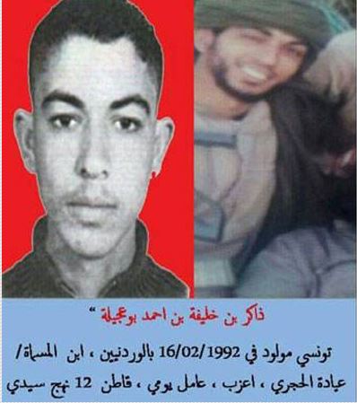 وبمحاصرتهما تولى أحدهما تفجير نفسه، والذي تبيّن أنّه الإرهابي ذاكر بن خليفة بن أحمد بوعجيلة، من مواليد 1992 وأصيل الوردانين ولاية المنستير.