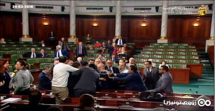 كما شهدت الجلسة "عركة" وشتم وسب بين نواب نداء تونس والنائبان مبروك الحريزي وعماد الدائمي، واِتهامات بخرق القانون بسبب امتناع عدد من النواب تسجیل الحضور وطلب رفع الجلسة.