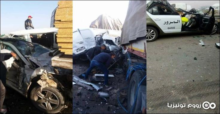 جدّ صباح اليوم السبت 21 أفريل 2018 على الطريق السيارة صفاقس سوسة وتحديدا على مستوى مدينة كركر التابعة لولاية المهدية حادث مرور أصفر عن مقتل 3 أشخاص (ضابطين من الحرس الوطني) وإصابة 10 آخرين في حصيلة أولية.