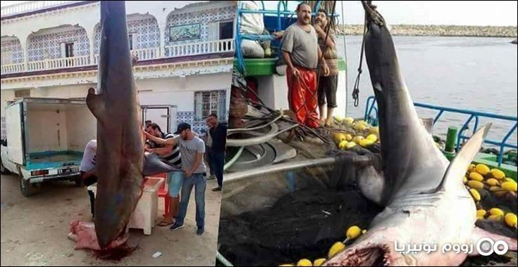 زووم - علِقَ قرش يزن حوالي الطن ويبلغ طوله حوالي 6 أمتار بشباك صيادي منطقة ''كاب نيقرو'' في معتمدية نفزة من ولاية باجة.