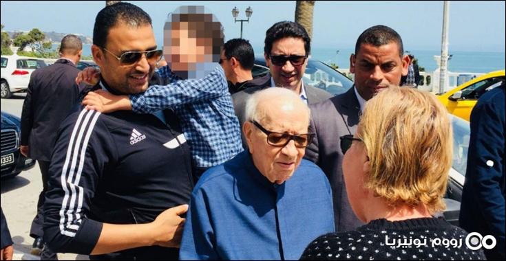 نشرت مواقع إعلامية صباح اليوم الأحد، 29 أفريل 2018، صورة لرئيس الجمهورية الباجي قائد السبسي وهو يتجول بالمرسى.
