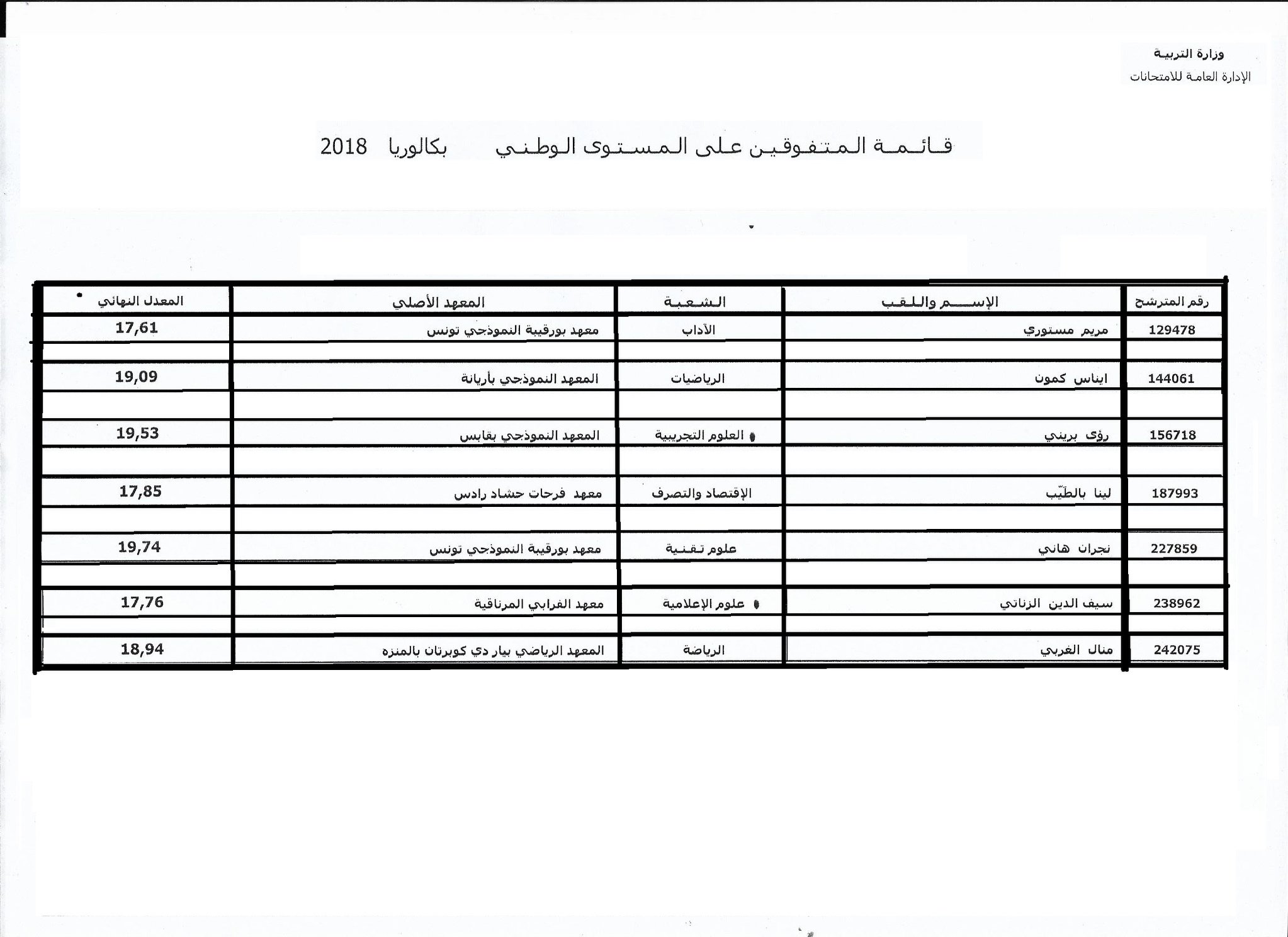 وقد تحصلت التلميذة نجران هاني شعبة علوم تقنية بالمعهد النموذجي بورقيبة بتونس على أفضل معدل في الدورة الرئيسية لبكالوريا 2018 بمعدل 19.74.