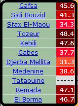 ونشر السكوحي، على صفحته الرسمية بالفايسبوك، درجات الحرارة بولايات الجنوب، قائلا "الله يكون في عونكم يا اهل الجنوب"، حيث تصل إلى 48.4 بولاية توزر، و47 بقبلّي ورمادة و46 درجة بالبرمة و45.6 بقفصة.