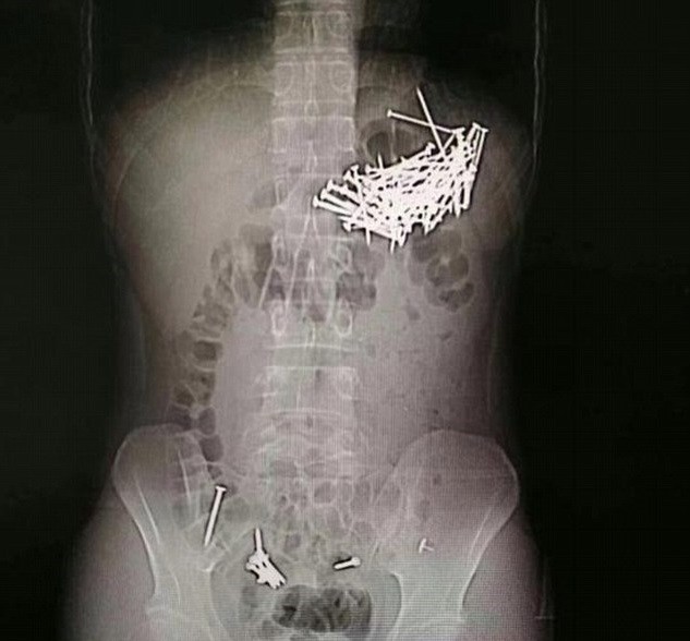 ونقلت صحيفة ديلي ميل خبر نجاة شاب صيني بأعجوبة بعد أن ابتلع 87 مسمارا و7 دبابيس إثر جدال حاد مع صديقته التي يحبها.