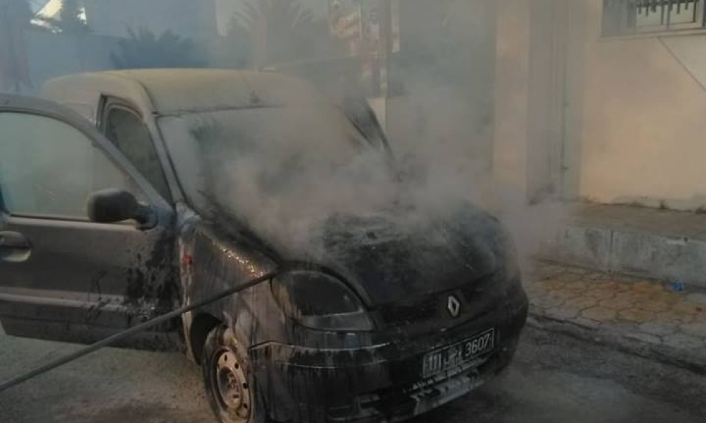 منّوبة : اشتعال سيّارة أمام مكتب البريد التونسي (صور)