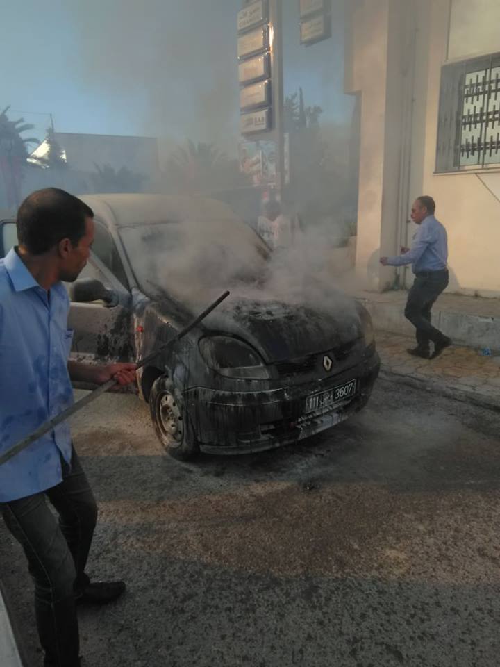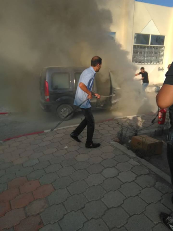 زووم- شبّ حريق قبل قليل في سيّارة أمام مكتب البريد التونسي منوبة.