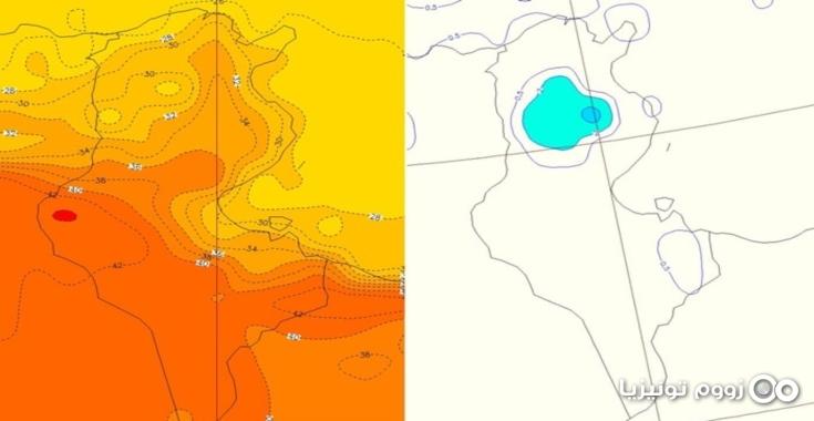 أما بالنسبة للجنوب فتتواصل الحرارة في مستويات عالية تتجاوز 42 في الظل محليا بالاضافة الى نسب الرطوبة العالية مما يعني أن المواطن في الشمس سيكون تحت تأثير أرقام أعلى من 46 درجة بتوزر وقبلي وتطاوين خاصة.