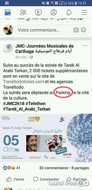 يُذكر أنّ صفحة أيام قرطاج الموسيقية نشرت وقالت أنّ المكان تغيّر من قاعة الأوبرا إلى "باركينغ" مدينة الثقافة ثم سارعت وغيرتها إلى "فضاء خارجي".