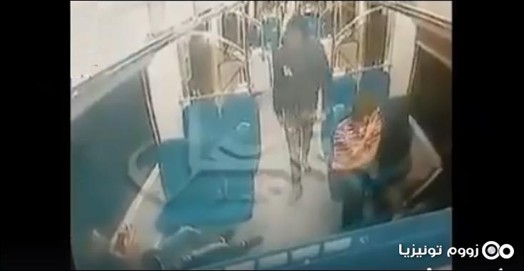 وهذا الشخص ظهر في فيديو تم تداوله على شبكة التواصل الإجتماعي و هو يعتدي على أحد المسافرين داخل القطار مستعملا سلاحا أبيضا.