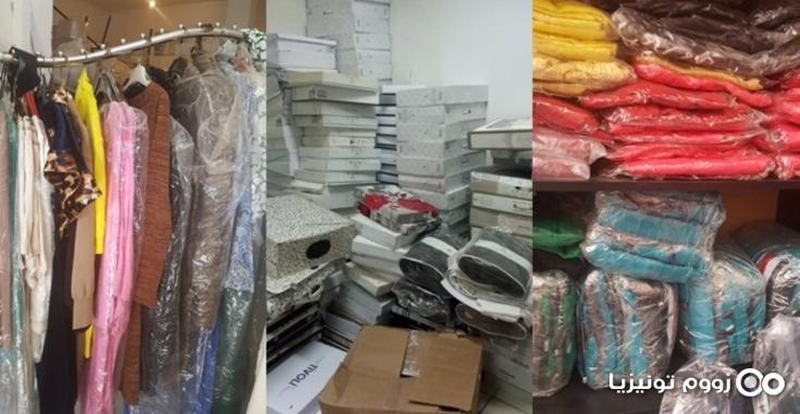 وعلى إثر هذا البلاغ تولت اليوم الأربعاء، 10 أكتوبر 2018، مصالح الوحدة الأولى للحرس بالتنسيق مع فرقة الحراسة و التفتيشات الديوانية بتونس مداهمة و تفتيش عدد من المخازن المشبوهة بجهة البحر الأزرق، و تمكنت من كشف كميات هامة من الملابس الجاهزة و الأغطية و المفروشات المهربة لا يمسك أصحابها إثباتات قانونية لمصدرها، تتمثل في : 9310 قطعة ملابس جاهزة و 1936 أغطية من القماش و 730 رداء للحمام و 270 متر من القماش و 55 غطاء للطاولة و 40 حقيبة يد للنساء.