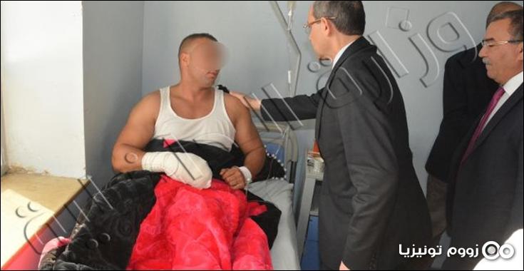 ويأتي ذلك للإطمئنان على الحالة الصحية لعون الأمن الذي تعرّض لبتر جزء من أصابع يده اليمنى بسبب انفجار شمروخ على كف يده أثناء محاولته إبعاده لتفادي إصابة بالوجه، وذلك أثناء مقابلة الدور النصف النهائي إياب لرابطة الأبطال الإفريقية في كرة القدم.