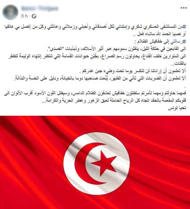 و توجه الأمني في تدوينته بالشكر لعائلته و زملائه من المستشفى العسكري.