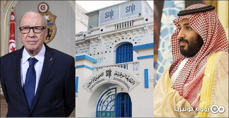إن النقابة الوطنية للصحفيين التونسيين تؤكد استهجانهاَ لزيارة ولي العهد السعودي، كونه خطراً على الأمن والسلم في المنطقة والعالم، وعدوّاً حقيقياً لحرية التعبير.