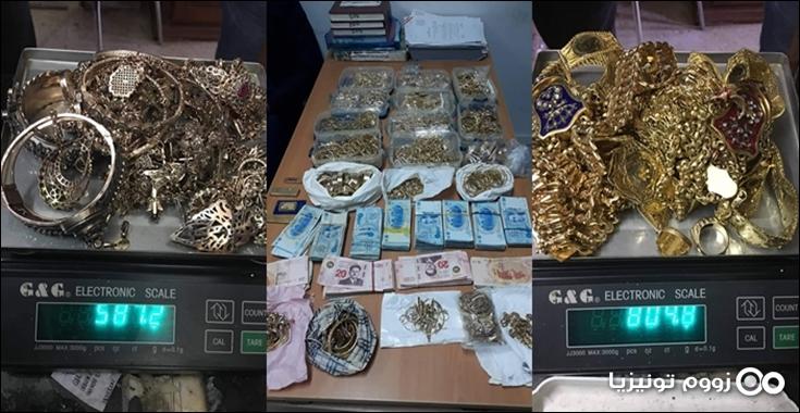 و قد تزامنت هذه العملية مع عملية ثانية قامت بها مصالح الإستعلامات التابعة للحرس الديواني بجهة سوسة، حيث تولّت مداهمة أحد محلات الصاغة تلاها تفتيش محلّ سكنى صاحبها ممّا مكّن من حجز 7.5 كغ من المصوغ من الذهب المصنّع و 300غ من الحجارة الكريمة قدرت قيمتها بحوالي 800 ألف دينار.