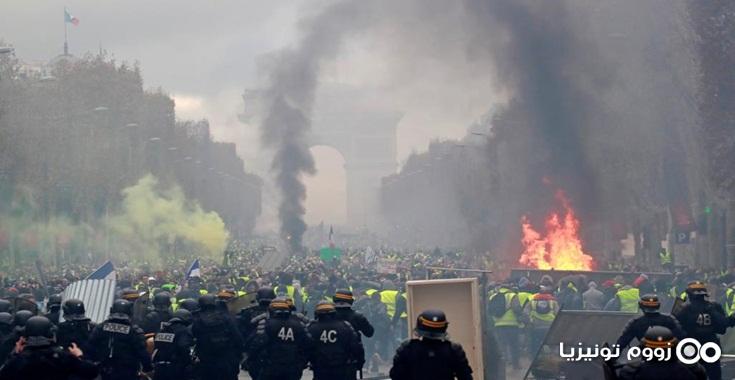 وقوس النصر الذي يعتبر من أبرز الرموز الوطنية في فرنسا تعرّض عصر السبت لأعمال تخريب ونهب طالت الأثاث والأعمال الفنيّة وأجهزة الكمبيوتر، إضافة إلى جدرانه التي كتبت عليها شعارات بالطلاء وذلك بسبب أعمال العنف التي رافقت التظاهرة التي نظمها أصحاب "السترات الصفراء".