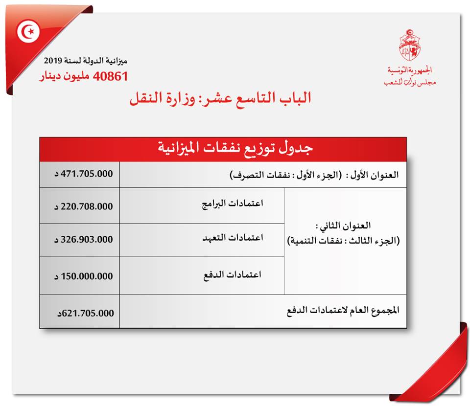 و تقدر قيمة الميزانية لسنة 2019 ب 621.705.000 دينار مقابل 640.567.000 لسنة 2018.