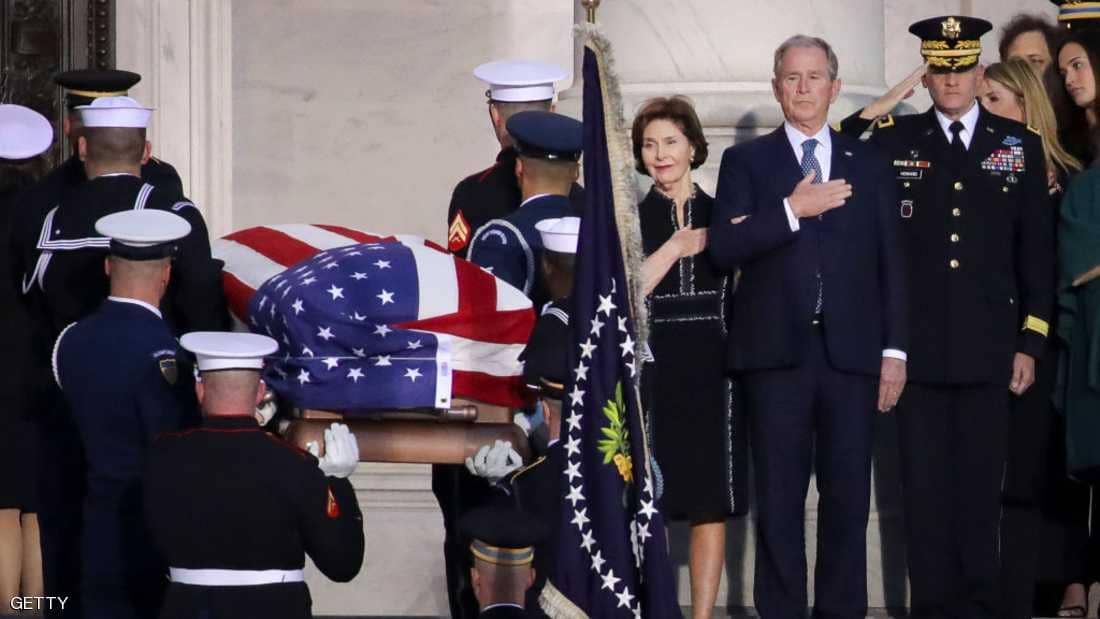 وسجّي جثمان بوش الأب، الرئيس الحادي والأربعين للولايات المتّحدة لمدّة يومين في مبنى الكونغرس،قبل أن يوارى الثرى في مركز مكتبة بوش الرئاسية في كوليدج ستيشن في تكساس إلى جانب زوجته التي توفيت في أبريل وابنته روبن .