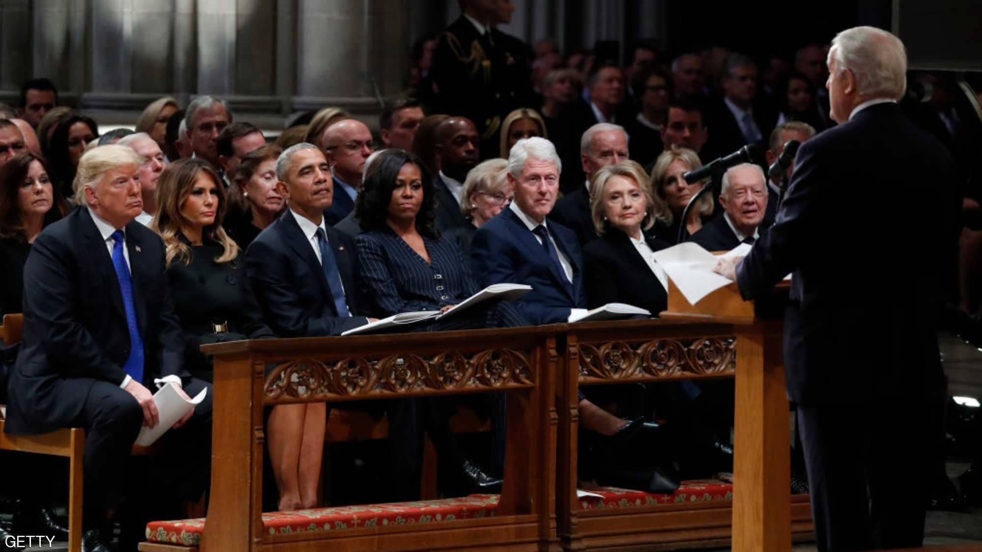 و قد أقيم حفل تأبين الرئيس الراحل بالكاتدرائية الوطنية في العاصمة واشنطن بحضور شخصيات أمريكية بارزة و عديد الوجوه السياسية المعروفة، وفقا لما ورد بسكاي نيوز.