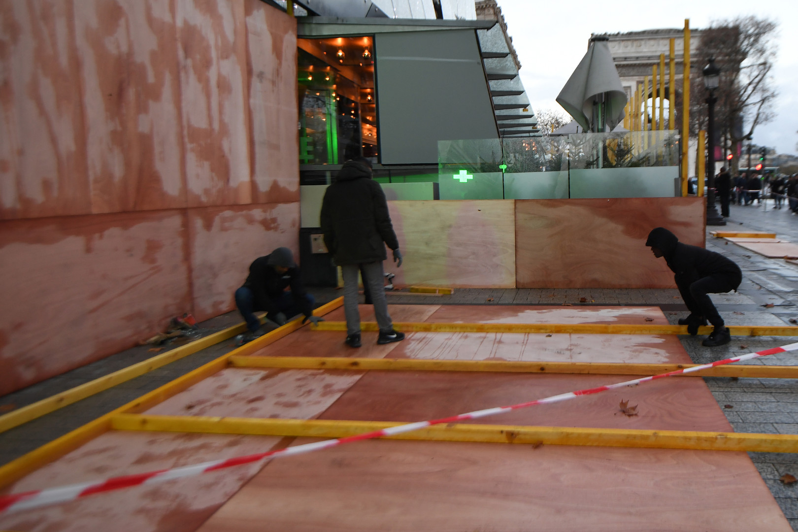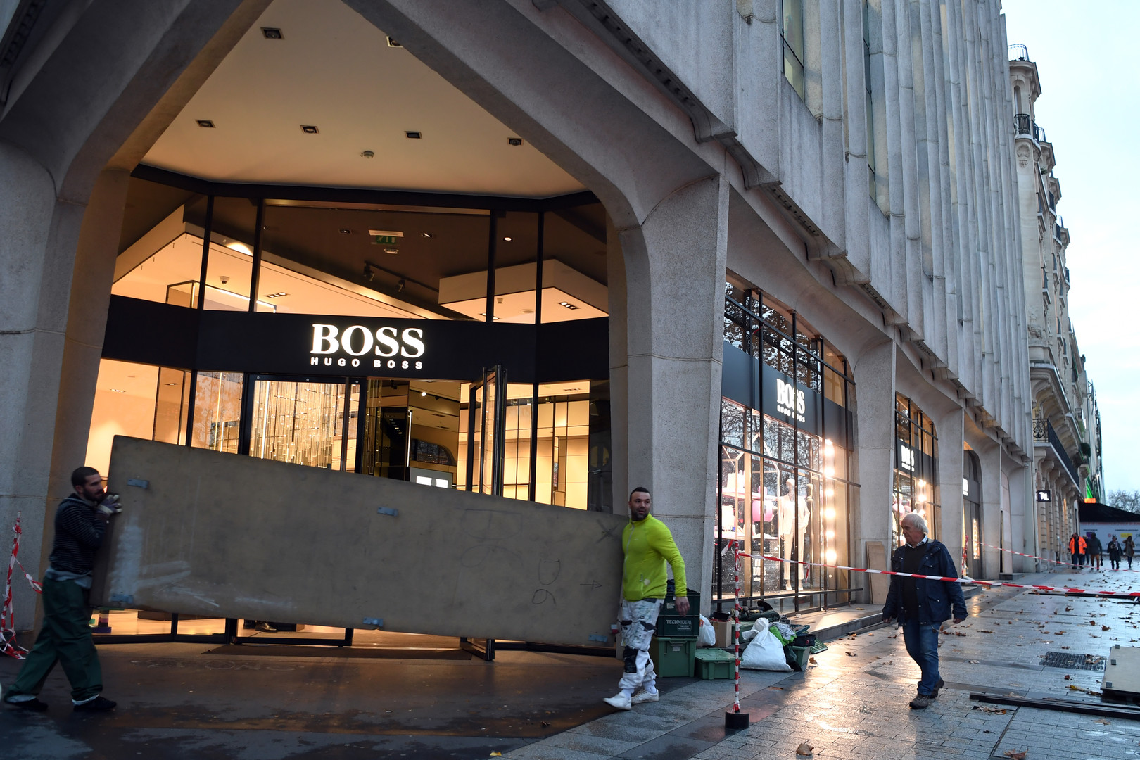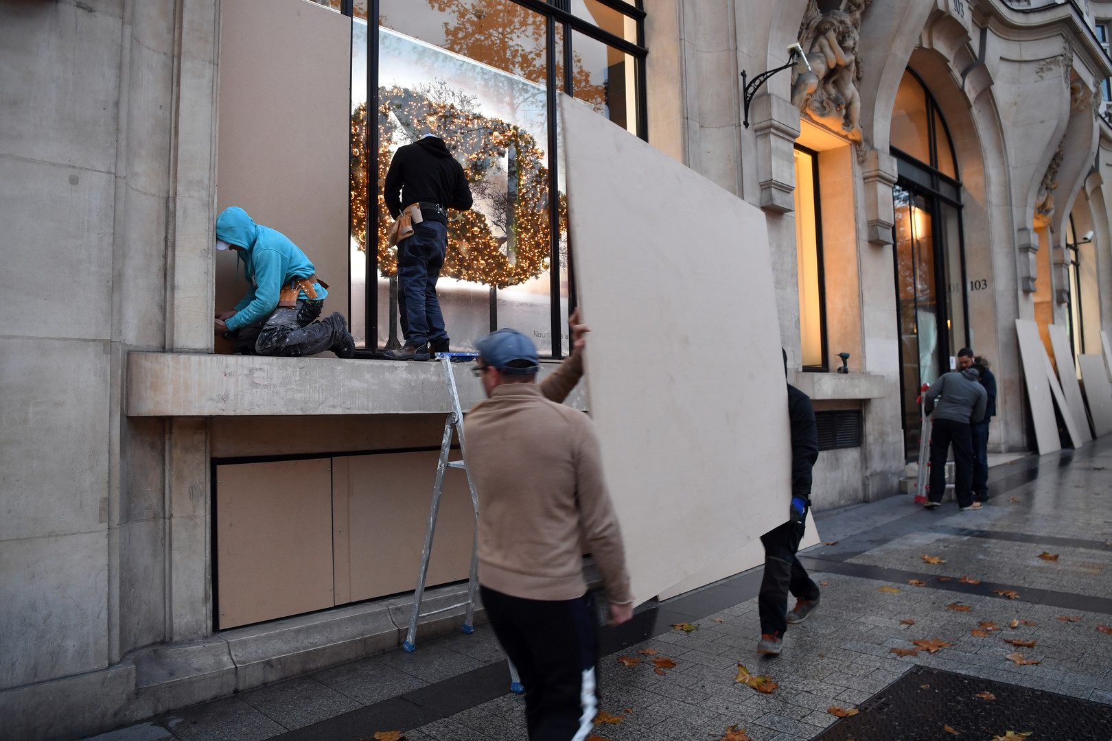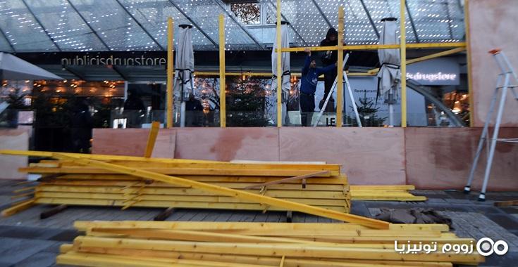 من جهة ثانية التجأ أصحاب المحلات التجارية و المقاهي و سط العاصمة باريس، بعد الخسائر الفادحة التي تكبدوها جراء احتجاجات السبت الماضي، إلى حماية واجهات محلاتهم و سلعهم.