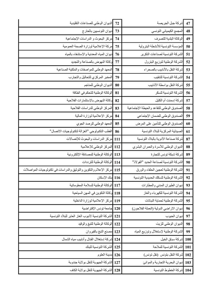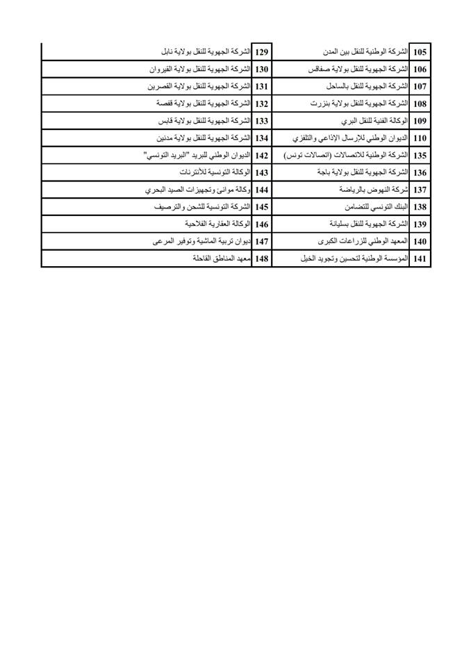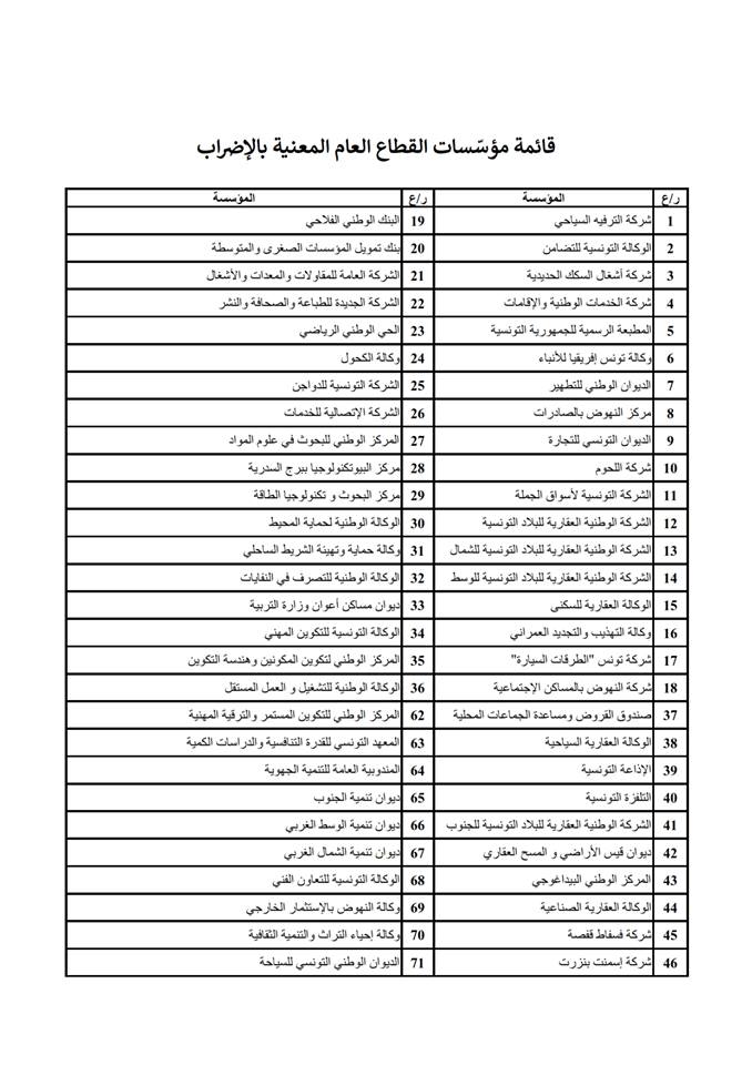 وأفاد الاتحاد أن الإضراب سيشمل 148 مؤسسة وهي :