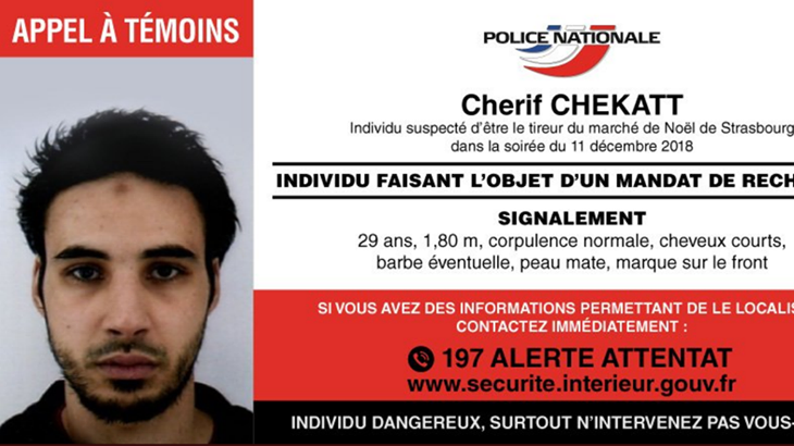 و نقلت فرانس 24 عن رئيس مكافحة الإرهاب "ريمي هيتز" قوله إن المشتبه به اسمه شريف شيخات و يبلغ من العمر 29 سنة، و مولود بستراسبورغ في 24 فيفري 1989.