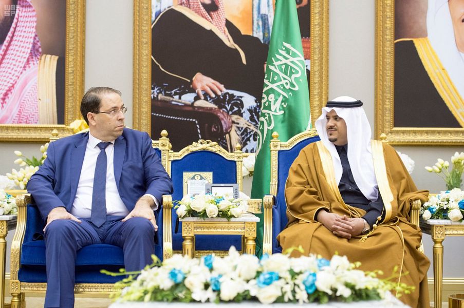 وكان في استقبال الشاهد بمطار الملك خالد الدولي نائب أمير منطقة الرياض الأمير محمد بن عبد الرحمن بن عبد العزيز، و وزير الدولة عصام بن سعد بن سعيد ، وسفير المملكة العربية السعودية لدى تونس محمد بن محمود العلي، وسفير تونس لدى المملكة لطفي بن قايد ، ومندوب من المراسم، وفق ما أوردته وكالة الأنباء السعودية.