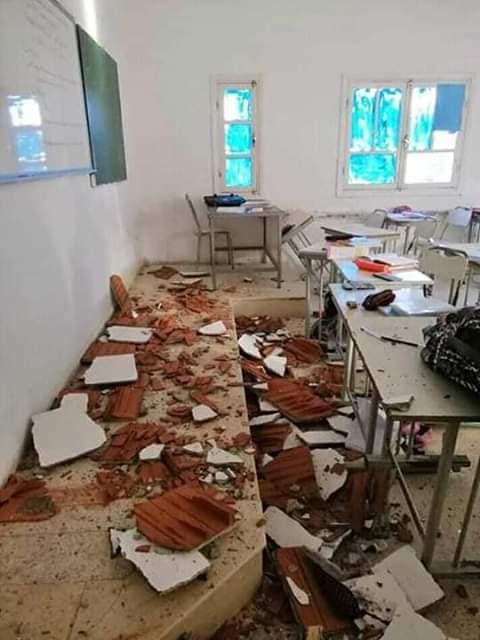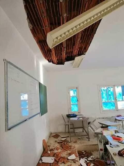 وقد أصيب الأستاذ إصابات خفيفة بينما سجلت حالات إغماء في صفوف التلاميذ وتدافعهم من أجل الخروج من القاعة .