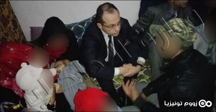 وكان الوزير مرفوقا بالمدير العام للأمن الوطني والمدير العام آمر الحرس الوطني ووالي القصرين، حيث تحوّل لزيارة عائلة الشهيد وتقديم التعازي، مُعبراً عن إلتزام الحكومة والدولة التونسية بتوفير الإحاطة المادية والمعنوية والإجتماعية اللازمة للعائلة.