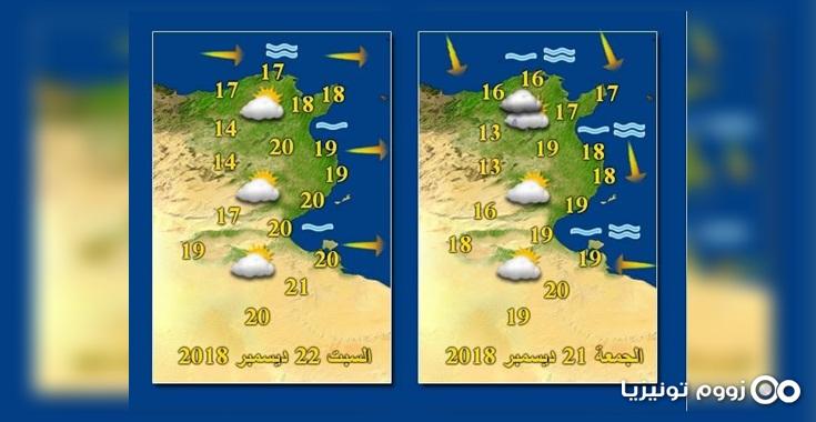 وأضاف المعهد أن الأجواء ستكون دافئة نهارا وباردة ليلا، وهي مميزات الطقس في فترة الليالي البيض التي تنطلق يوم 25 ديسمبر وفق التقويم الفلاحي والتُراث الشعبي لبلادنا.