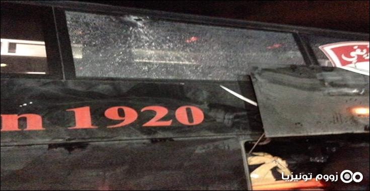 وقد تعرّضت الحافلة إلى الرشق بالحجارة وتهشيم الزجاج وهي في طريقها إلى الملعب الأولمبي بسوسة، فيما لم يُسجّل وفق المعطيّات الأولية أي إصابات في صفوف الوفد.