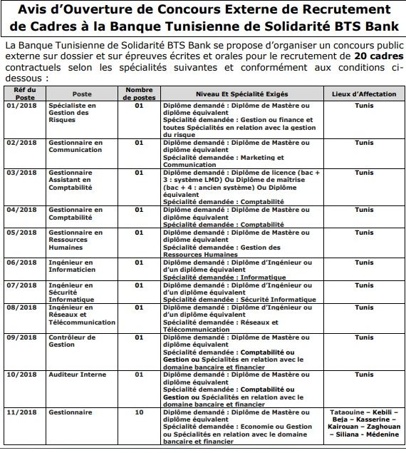 وقد حدد البنك آخر أجل للتسجيل يوم 18 فيفري 2019 على الساعة منتصف النهار .