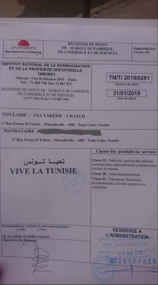 ونشرت أنا يقظ في صفحتها الرسمية على موقع التواصل الاجتماعي "فايسبوك" وصل إدراج "تحيا تونس" في المعهد وهو الأمر الذي يمنع مؤسّسي المشروع السياسي الجديد من إطلاق تسمية "تحيا تونس" على حزبهم.