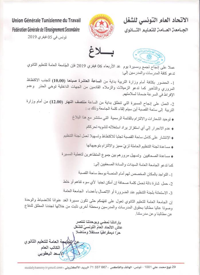 ينفّذ أساتذة التعليم الثانوي اليوم الأربعاء 24 أفريل 2019ن وقفة احتجاجية بساعتين بداية من الساعة 10:00 إلى ...