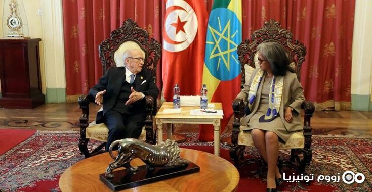 وأكد رئيس الدولة التزام تونس بدعم انتمائها الإفريقي وسعيها المتواصل إلى مزيد تعزيز علاقاتها وانفتاحها على كافة دول القارة من بينها منطقة شرق إفريقيا حيث انضمت بلادنا مؤخرا إلى السوق المشتركة لدول شرق وجنوب إفريقيا، مشدّدا حرص تونس على تنمية علاقاتها مع إثيوبيا في شتى المجالات، ومبرزا أهمية فتح ممثلية دبلوماسية إثيوبية في تونس لخدمة علاقات التعاون بين البلدين.
