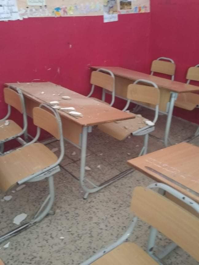 وقد تقرر اليوم غلق 2قاعات تدريس قصد إعادة البناء وتعهد قاعة ثالثة بالإصلاحات اللازمة وتجديد شبكة الكهرباء وذلك إثر تدخل الطرف الاجتماعي ممثلا في الاتحاد الجهوي للشغل بنابل والفرع الجامعي للتعليم الأساسي بنابل والنقابة الأساسية للتعليم الأساسي بقليبية وبحضور المندوب الجهوي للتربية بنابل ومصلحة البناءات.