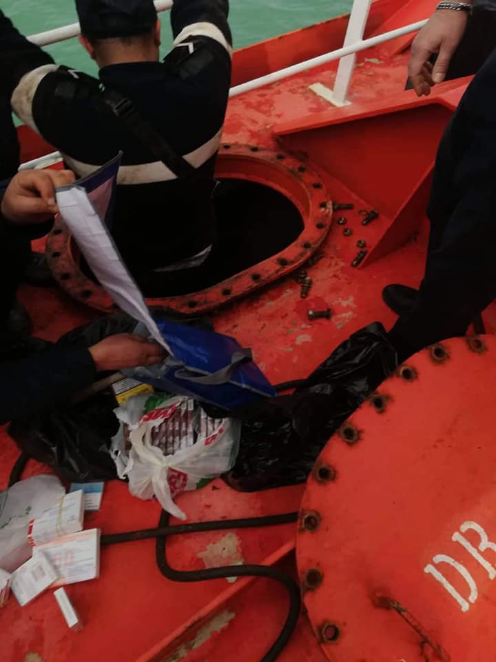 أفادت الديوانة التونسية، اليوم الأربعاء 27 فيفري 2019، بأن الفرقة البحرية للديوانة بحلق الوادي، تمكّنت يوم أمس الثلاثاء إثر تفتيش باخرة أجنبية قادمة من أحد الموانئ الإيطالية من العثور على حوالي ألف علبة سجائر تحمل علامات فاخرة، كما تمّ العثور على 11 نوع من الأدوية المخدرة مدرجة بالجدول "ب" مخفيّة بإحكام داخل إحدى الفضاءات الجوفاء للباخرة والمغلقة بعديد البراغي ولا يمكن فتحها و الولوج إليها إلا بصعوبة وهو فضاء مخصص عادة لـ''البلاستاج''.