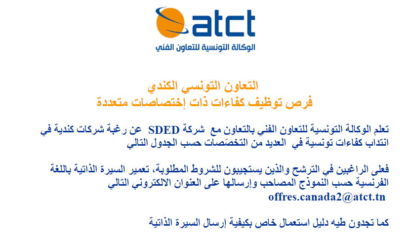 وقد نشرت الوكالة التونسية للتعاون الفني عروض شغل المتعلقة بهذه الشركات.