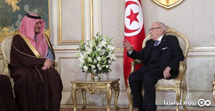 وعبّر رئيس الجمهورية عن ارتياحه الكبير للمستوى المتميز الذي بلغته علاقات الأخوة والتعاون بين تونس والمملكة العربية السعودية وذكّر بالعلاقات التاريخية التي تجمع البلدين.