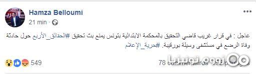 زووم - أعلن مُقدّم برنامج الحقائق الأربع على قناة الحوار التونسي، حمزة البلومي، أن قاضي التحقيق بالمحكمة الإبتدائية بتونس قرّر منع بث تحقيق البرنامج حول حادثة وفاة الرضع في مستشفى وسيلة بورقيبة.