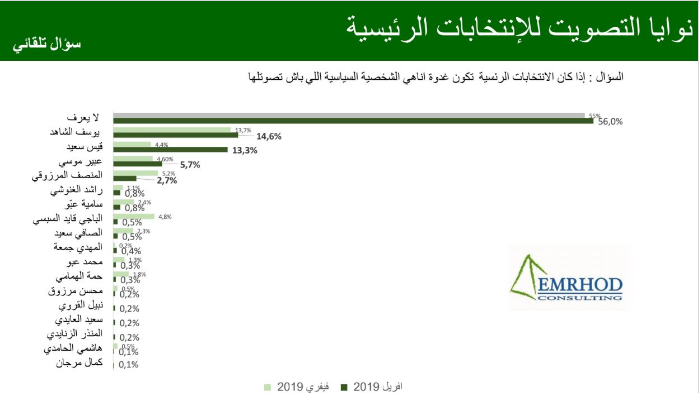 هذا و تراجعت بعض الأسماء في نوايا التصويت للانتخابات الرئاسية حيث تراجع ترتيب رئيس الجمهورية الباجي قائد السبسي إلى المرتبة السابعة بنسبة 0.5 % و رئيس حركة النهضة راشد الغنوشي و النائبة عن التيار الديمقراطي سامية عبو بنسبة 0.8%.