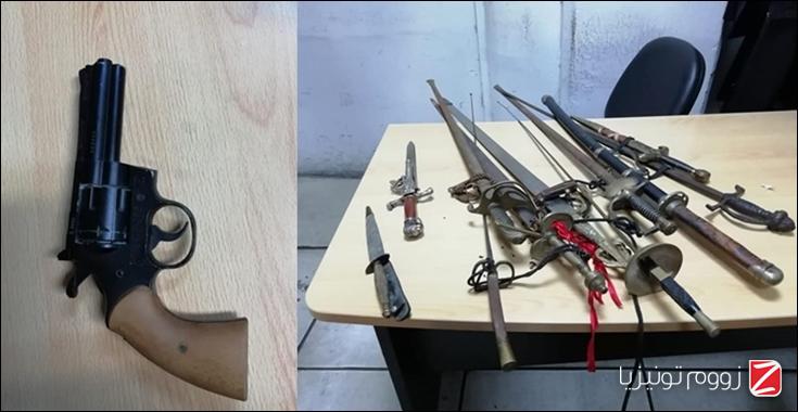 كما حجزت عدد 6 خراطيش و ثمانية سيوف و ثلاث خناجر تقليدية لم يصرح بها المعني بالأمر ضمن أغراضه الشخصية، وذلك وفق بلاغ الديوانة.