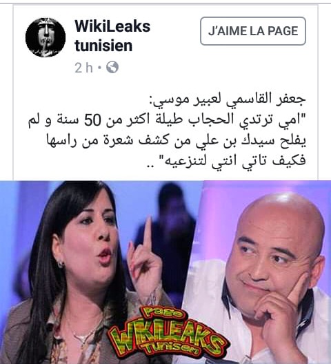 حيث انتقد القاسمي في تصريحه المزعوم عبير موسي التي هددت بنزع الحجاب.