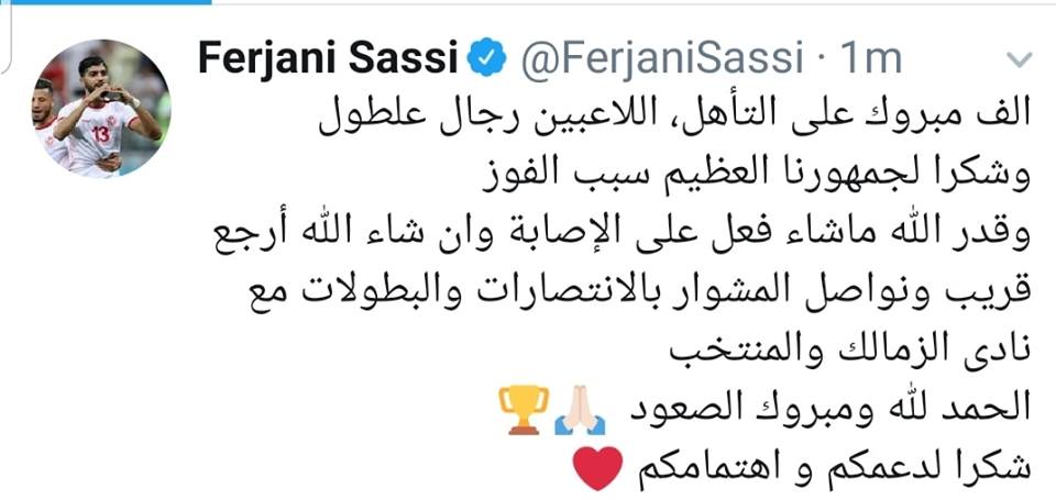 نشر اللاعب الدولي فرجاني ساسي اليوم الأربعاء 17 أفريل 2019 صورة له على حسابه على "إنستغرام" بعد إ ...