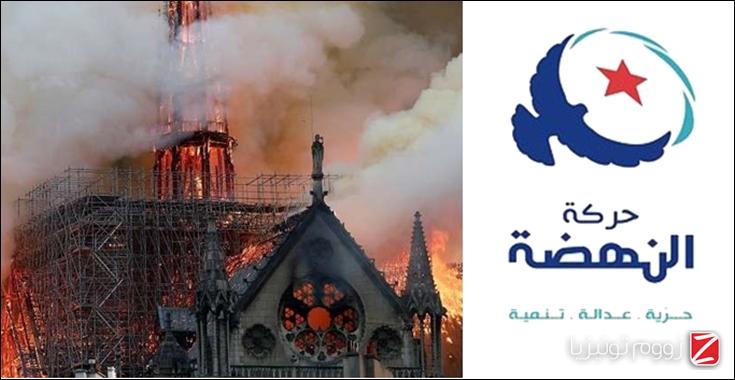 وأفادت النهضة، في بلاغ إعلامي لها، أنّها تتضامن مع الشعب الفرنسيّ في هذه الكارثة الأليمة التي مسّت معلما تاريخيّا وحضاريّا ودينيّا يقصده ملايين الأشخاص عبر العالم، مُعربة عن "تأثُّرها البالغ للأضرار الكَبيرة التي لحقت بهذا المعلم الثقافي العريق لمدينة باريس".