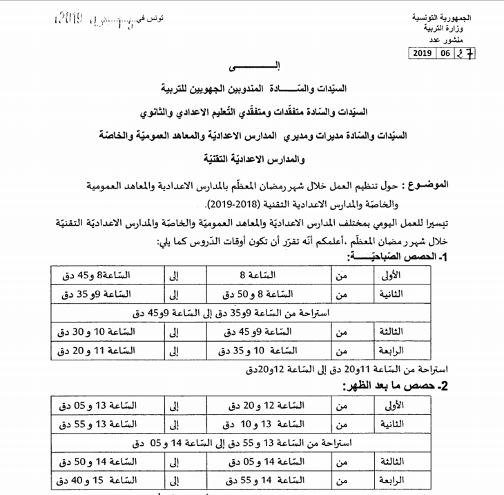 سيكون توقيت العمل بالإدارات العمومية والجماعات المحلية والمؤسسات العمومية ذات الصبغة الادارية خلال شهر رمضان على النح ...