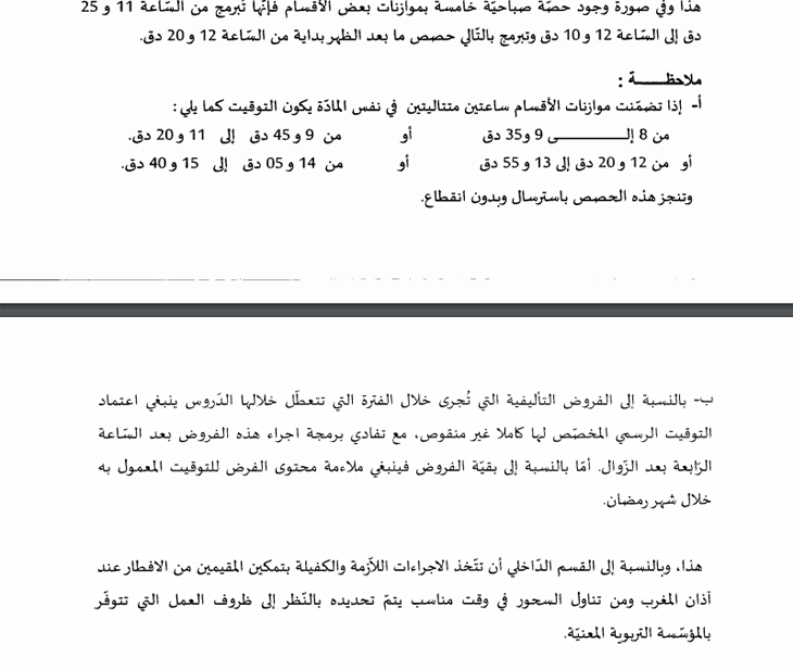 ويخص هذا التوقيت التلاميذ بالنسبة للمدارس الإبتدائية والمعاهد الثانوية وتوقيت اجراء الفروض التأليفية.