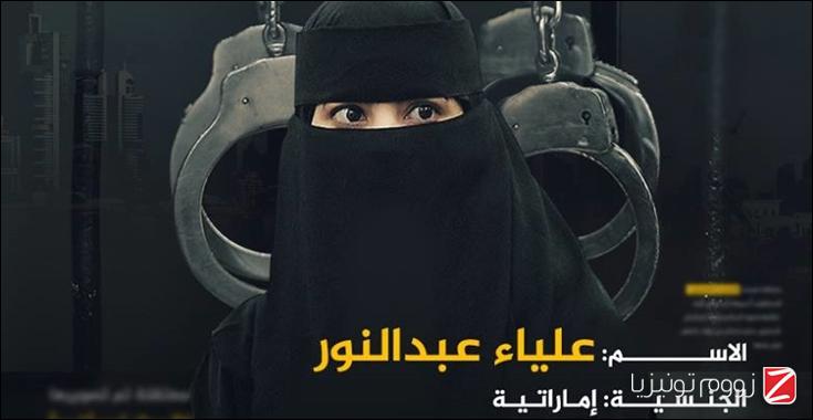 واِعتقلت علياء عبد النور من منزلها في مدينة عجمان في 28 جويلية 2015، بتهمة "مساعدة الأسر السورية المتضررة من الحرب وجمع التبرعات لها، كما اتهمت بجمع التبرعات للأسر الفقيرة داخل الإمارات"، حسب البيان.