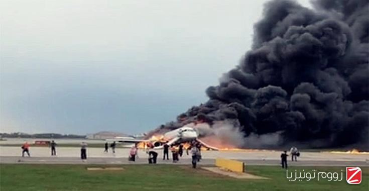 وأظهرت مقاطع فيديو، نُشرت على مواقع التواصل الاجتماعي، لحظة اندلاع النيران في الطائرة وهي تهبط في مطار شيريميتييفو الدولي في موسكو.