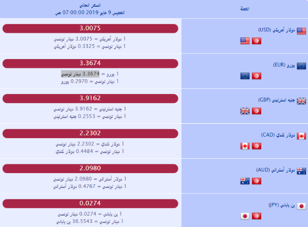 أسعار العملة بالدينار التونسي اليوم الخميس 09 ماي 2019